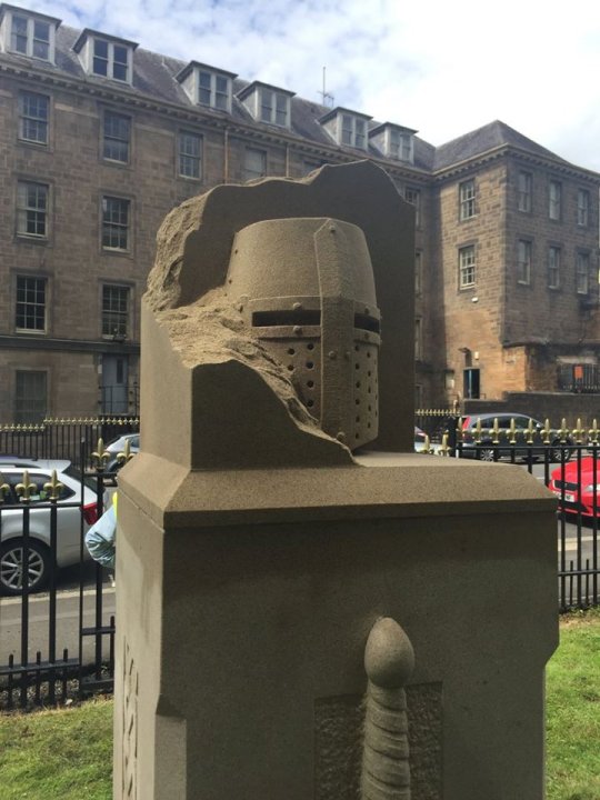 Am absolutely proud as punch to finally see the wee monument that I doodled in my sketch book all those years ago finally standing in the Necropolis at Glasgow Cathedral. Congratulations to all at the Society of William Wallace for not giving up on this project and a huge thank you to the two sculptors, Roddy and Chris, whose talent, skill and commitment brought the idea to life. Amazing work, guys. On a side note, this monument was set in place two days before the official unveiling, on the anniversary of the death of Wallace's great adversary - King Edward 1st - self proclaimed "Hammer of the Scots". Well, guess what? We're still here, Eddie! Andy Hillhouse (designer of the monument)