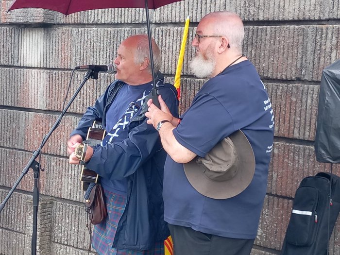 Phil The Town Cryer from Lanark kicked off proceedings with a Welcome Poem and a Poem about the Battle of Bannockburn, both were brilliant. Ted Christopher was excellent as always with words between the speakers and singing Scottish Dawn and Scots Wha Hae. I recited the Poem around the Rotunda and gave an explanation of each line by Kathleen Jamie.