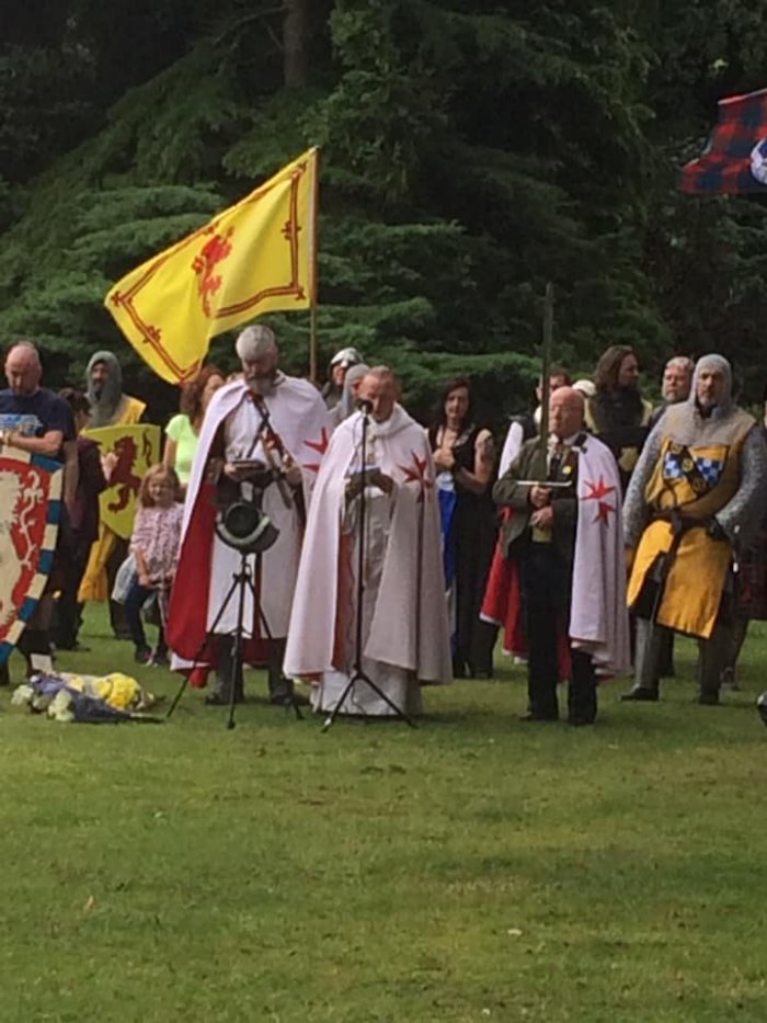 After arriving at the church further wreaths were laid, then we had the festival in full flow; we had the Treubh Dansse dance group, Britannia doing what they do best with their re-enactments show, which was outstanding, but the highlight for me was Clann an Drumma playing and our Spanish guests getting involved with dancing and playing some instruments along with the band. The church was also doing tours which were well worth being on and we also had the Bruce throne, thanks to the Strathleven Artizans for that, a 3D copy of the Declaration of Arbroath (the pictures don’t do it justice), a replica copy of the Lubeck Letter and some of the props used in the latest film 'Outlaw/King', which included the sword Chris Pine used in it.
