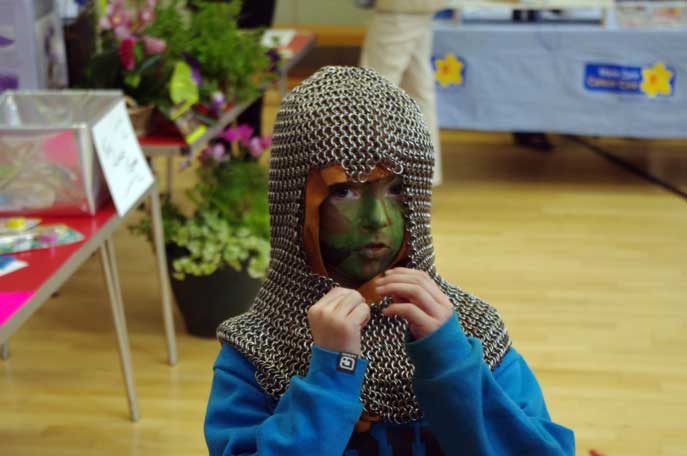 Unfortunately the weather was not too kind to us and we were inside for the first time but the event was well attended, and the kids all enjoyed talking to us and getting to hold the weapons, some of them were just a wee bit too keen on the pointy sharp things on display, but no-one got hurt and with our expert supervision hopefully the kids at Wallacewell Primary learned and enjoyed the experience as much as we did.